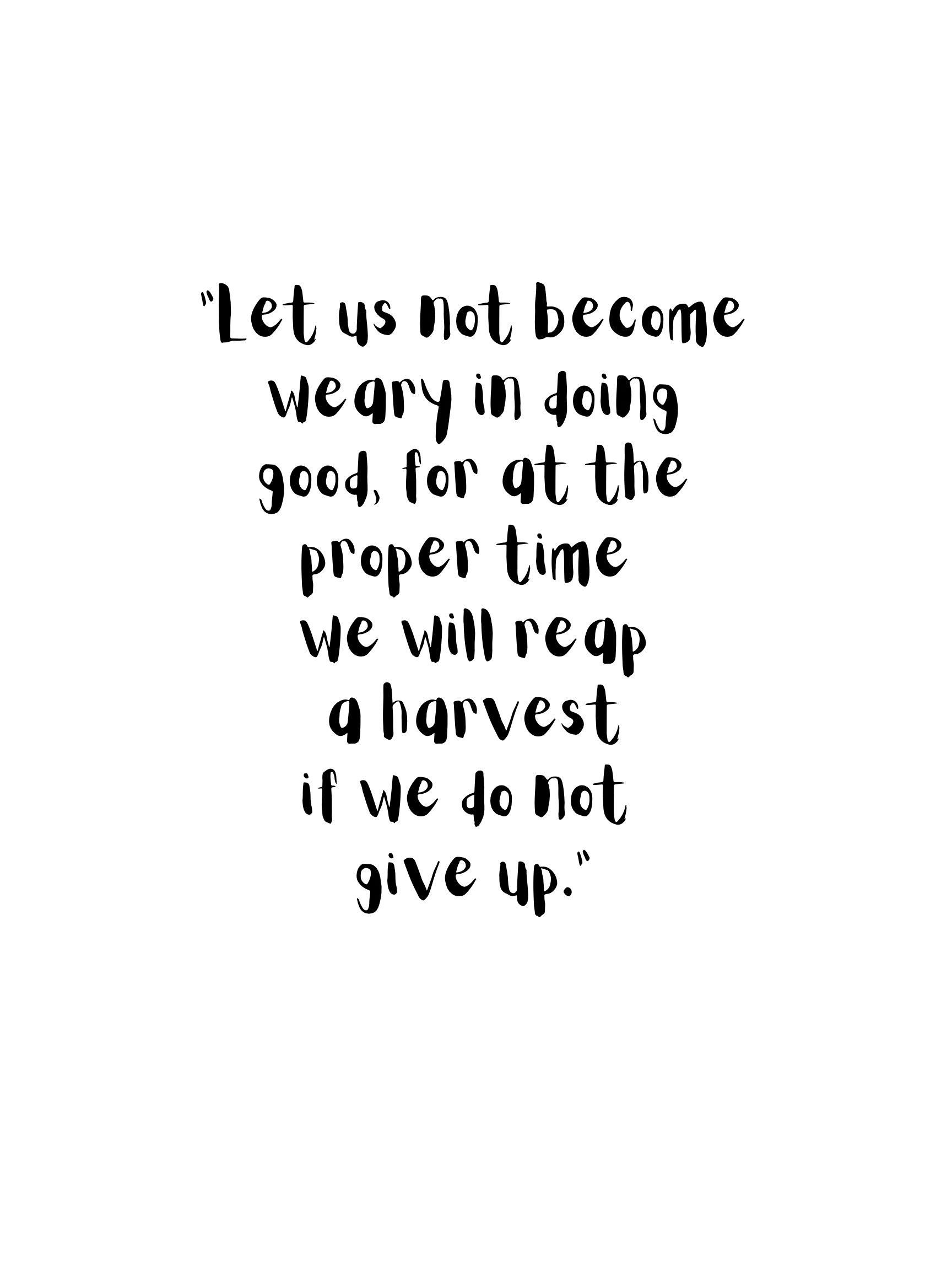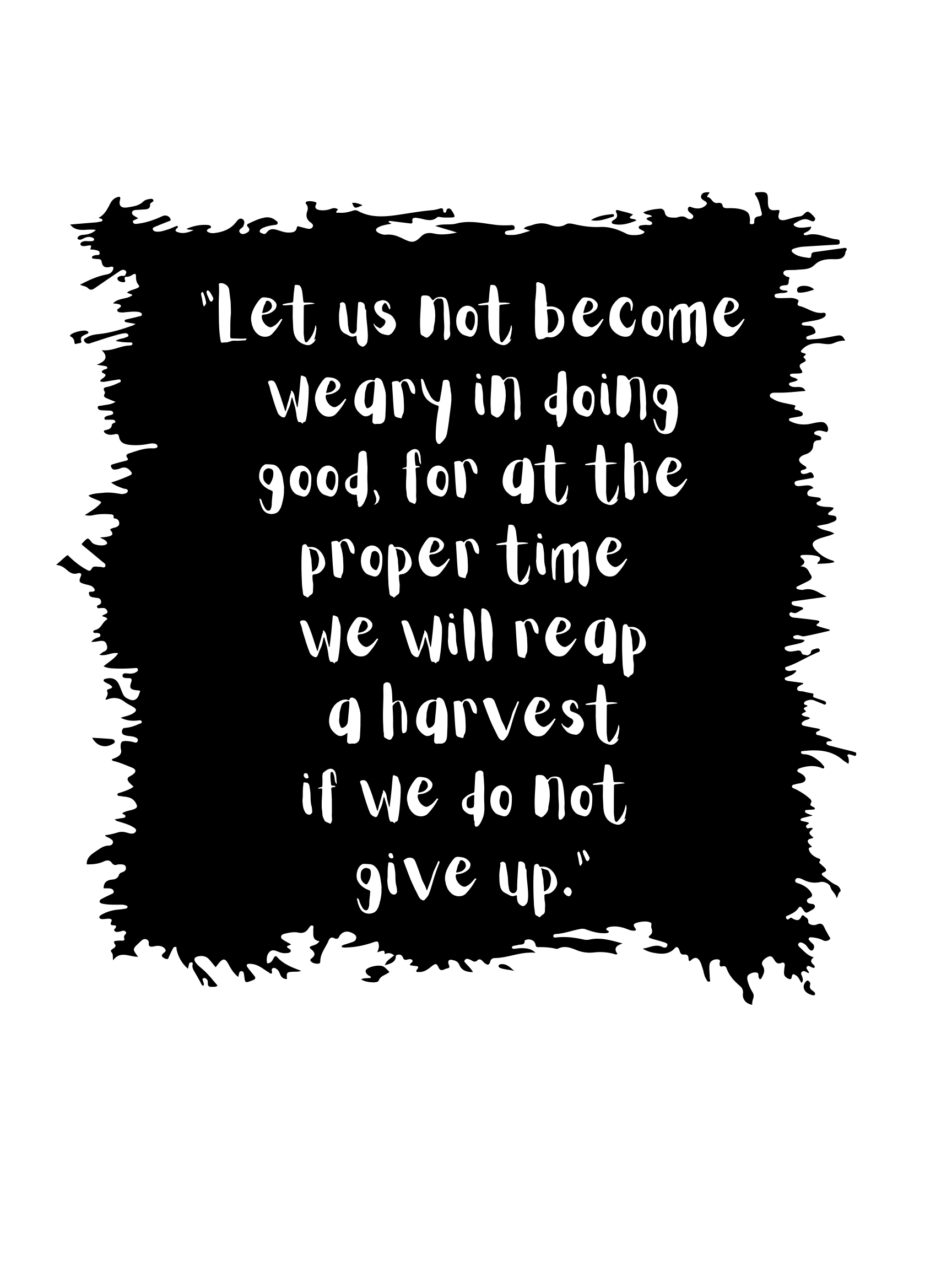 “Let us not become weary in doing good, for at the proper time we will reap a harvest if we do not give up.”