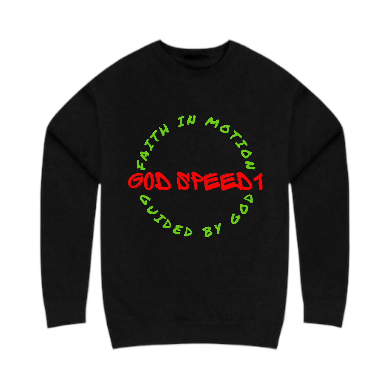 The "God Speed 1 " Crewneck Faith in Motion Black